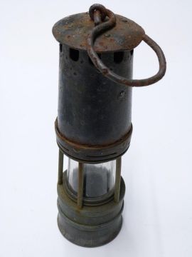 Vintage miner's lamp stamped to the base 1756, 26cm tall