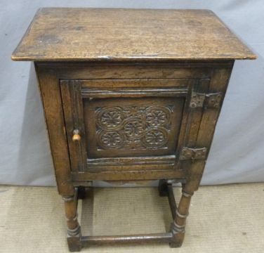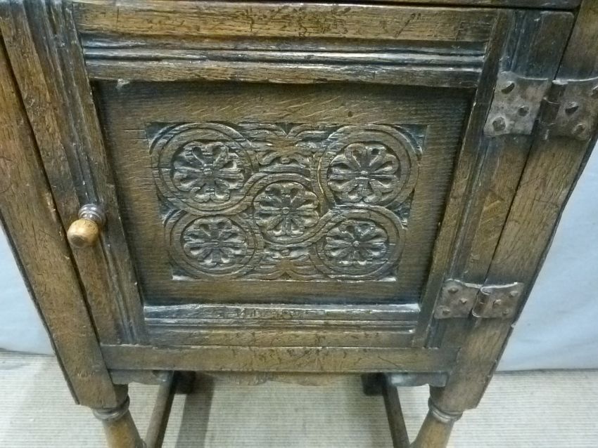 18th/19thC carved oak pot cupboard, W53 x D35 x H84cm