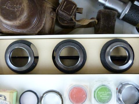 Leica camera accessories to include M3 to screw adaptor, 16469 converter, FIPOS in box, viewfinders, cases, BOOWU copier in box, lens hoods and flash gun