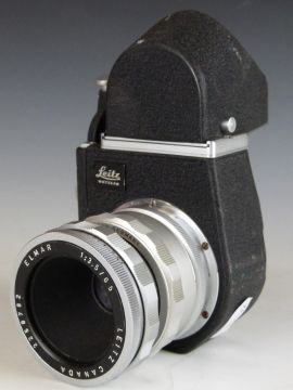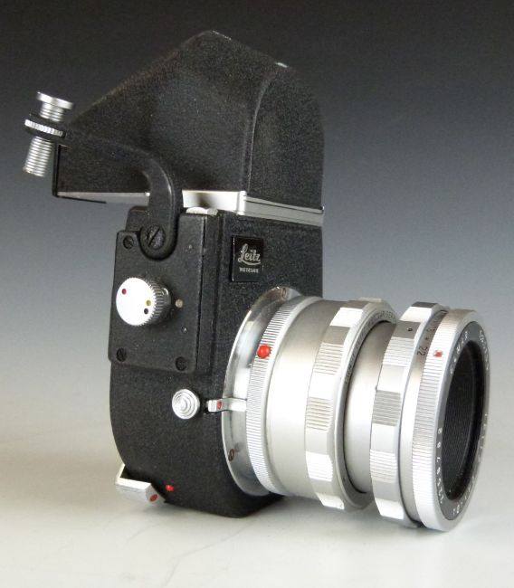 Leitz Visoflex with 16466M mount and Elmar 1:3.5/65 camera lens and box to suit