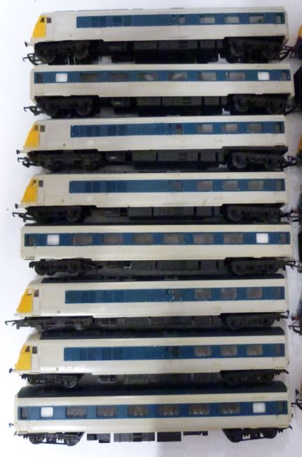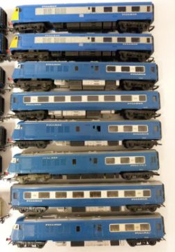 Twenty-three Tri-ang and Hornby 00 gauge model railway The Blue Pullman Power cars, Trailer cars and coaches.