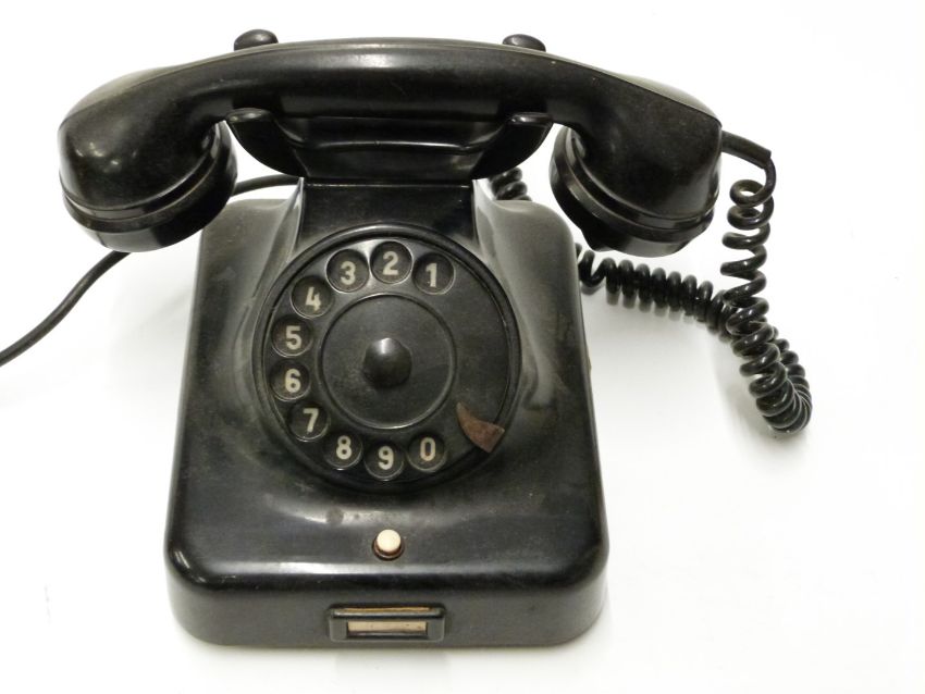 Vintage W38 telephone, marked VEB RFT 305 to base, H17cm