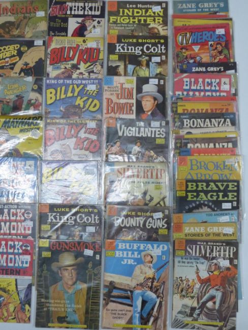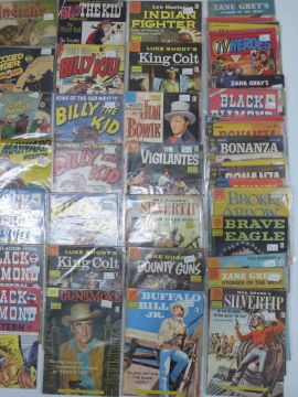Fifty-one British and American Western related comic books including Gold Key, Fawcett/ Miller etc.