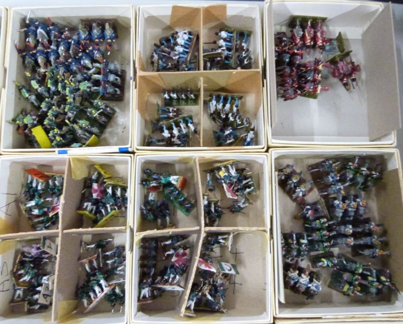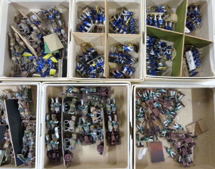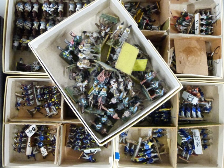 A collection of metal table top war game figurines, a variety of armies and ages including Saxon, Roman, Gaul and Celtic.
