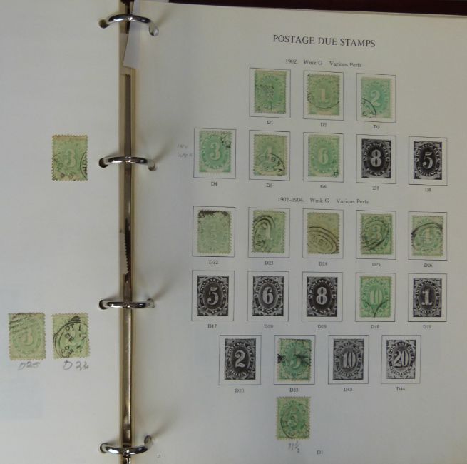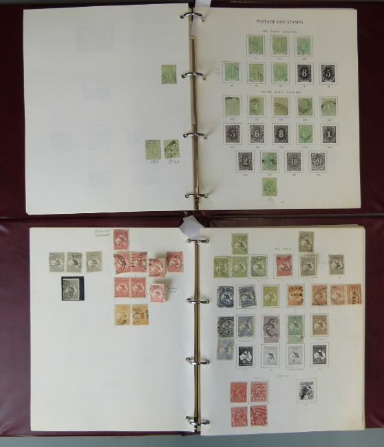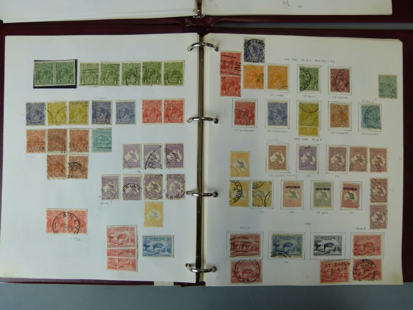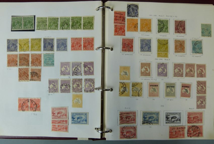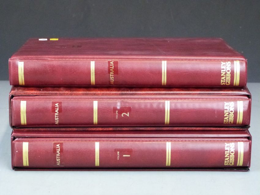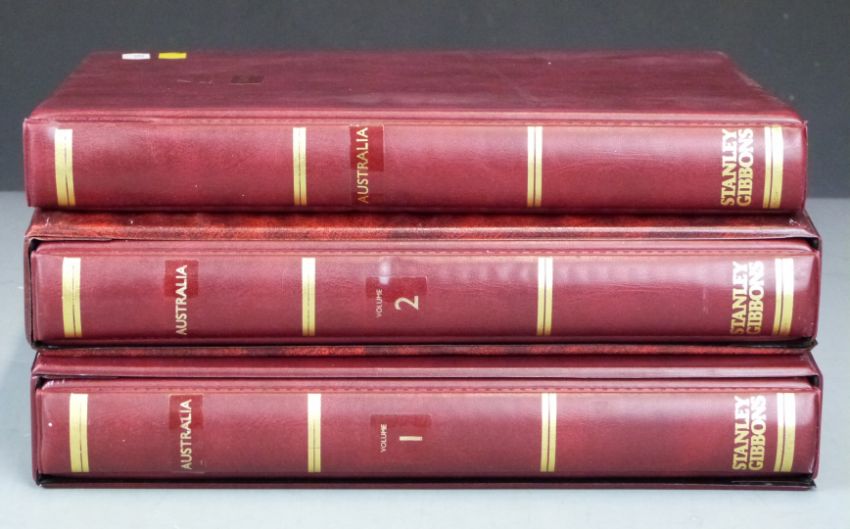 Two well-filled Stanley Gibbons Australia albums and a sparse album, 1913-1997, mostly used. Also postage due and official stamps and Australian Antarctic Territory. Many early issues