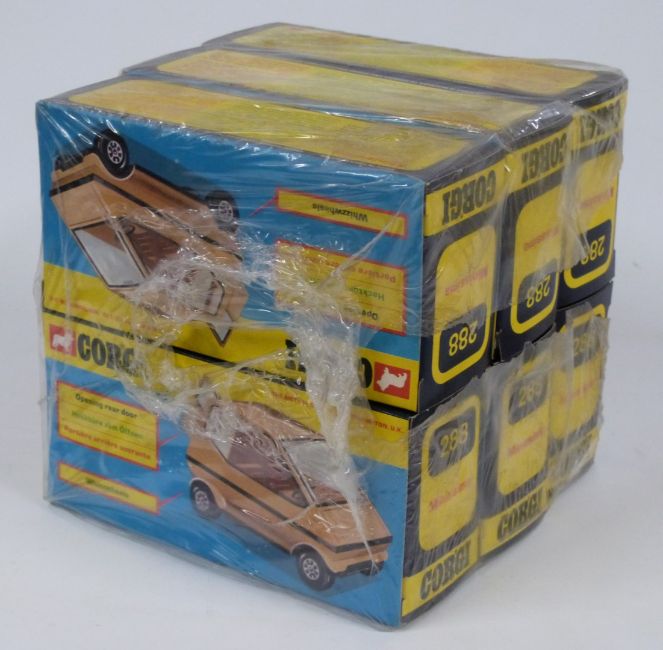 Six Corgi Toys diecast model Minissima cars, 288, all in original display boxes and wrapped in dealer's delivery packaging.