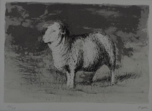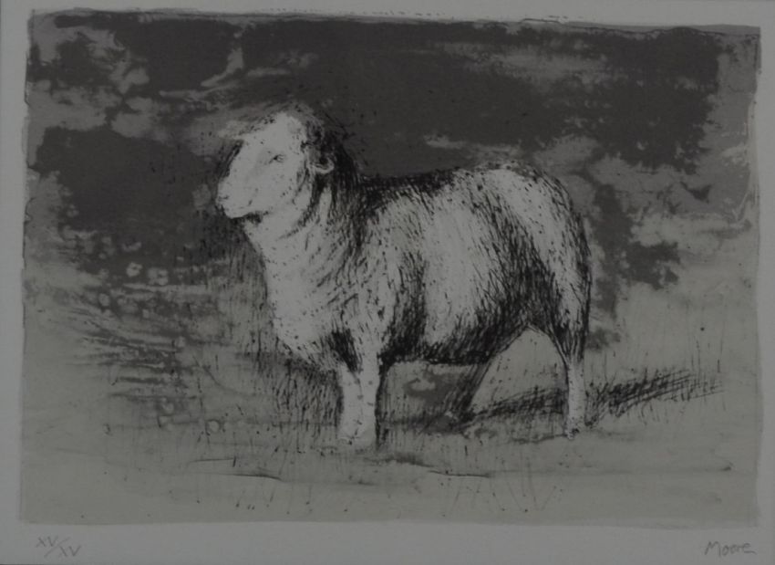 Henry Moore (1898-1986) signed limited edition (XV/XV) etching of a sheep, 22 x 30cm, in oak frame