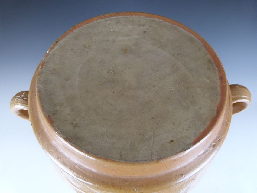 A large twin handled covered pottery crock, H42cm