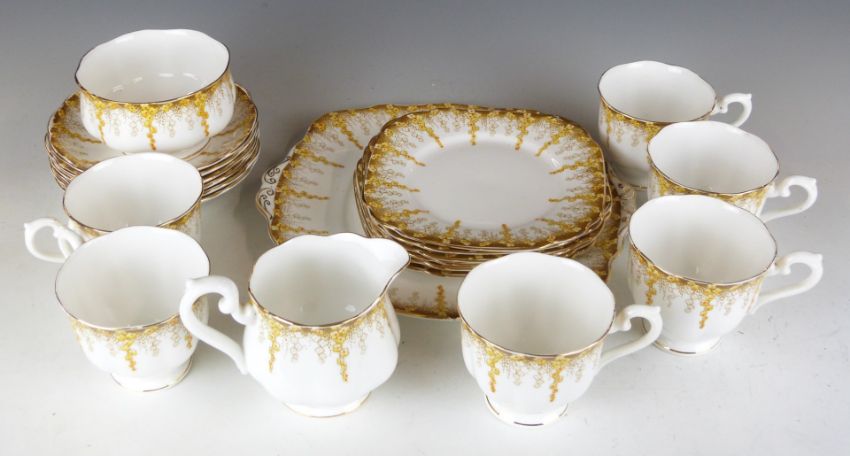 Twenty one pieces of Royal Albert tea ware hand decorated in enamels in the April Showers pattern