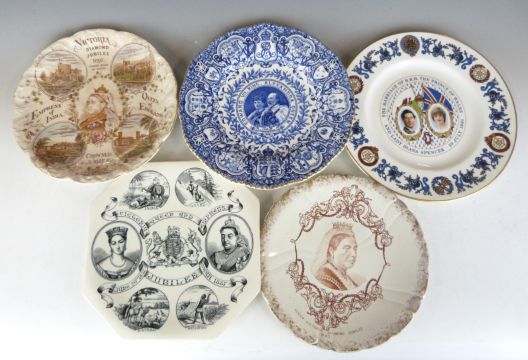 A collection of ceramics including Royal Crown Derby Imari 1128 pattern boxed plate, Wedgwood, Minton, Royal Doulton, Royal Worcester boxed Peter Pan plate, Victorian commemorative ware etc