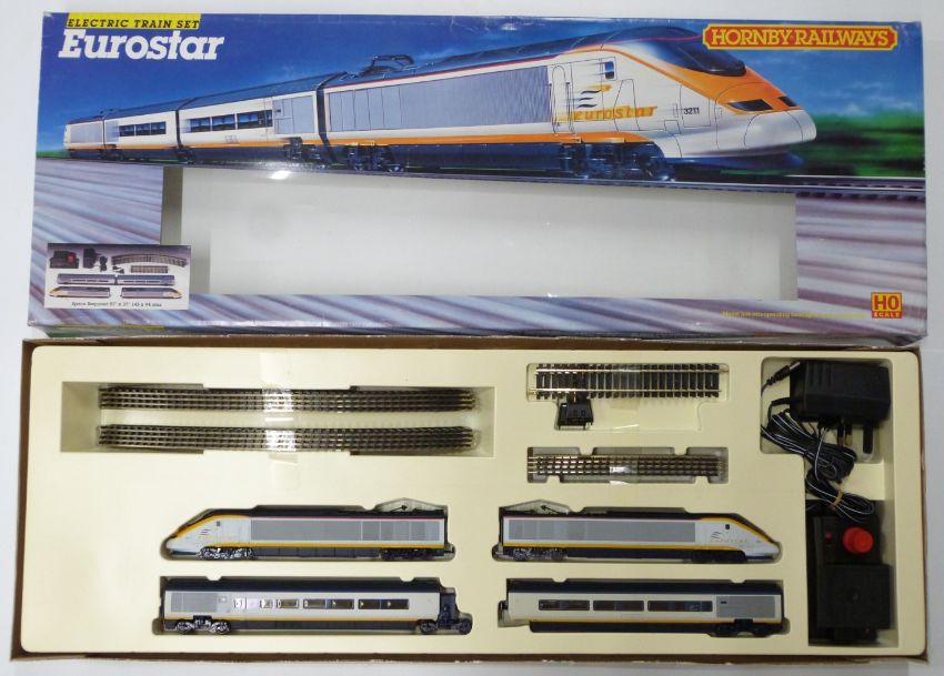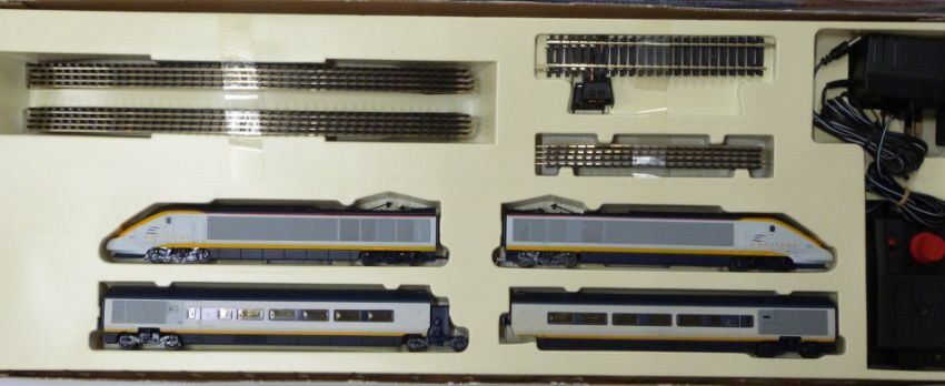 Hornby 00 gauge model railway Eurostar train set, R.647, in original box.