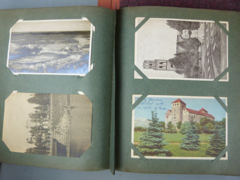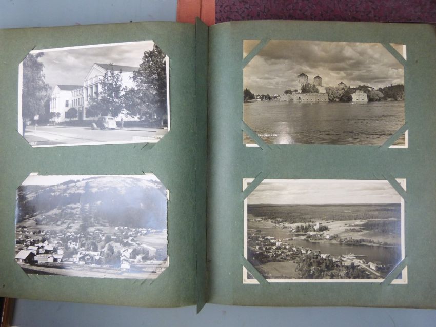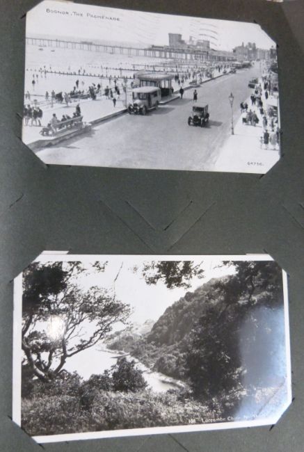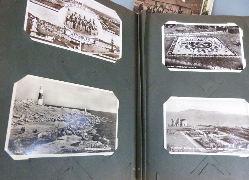 Three albums and various loose postcards to include Hindhead, Vanguard motor accident Handcross July 12th 1906, Horsham, Wales, Portland, Eastbourne, Kimberworth, Cornwall, Ennerdale water, inland waterways, railway and shipping