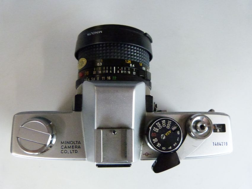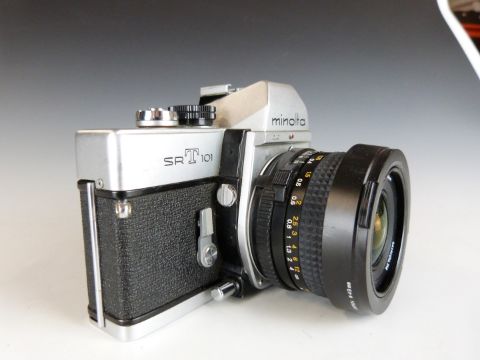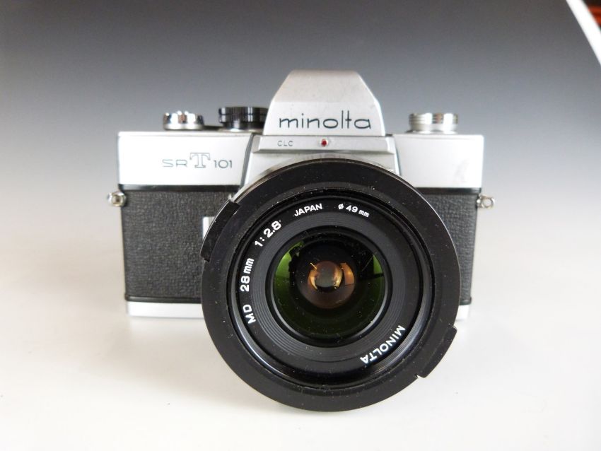 Minolta SRT101 SLR camera with 28mm 1:2.8 lens