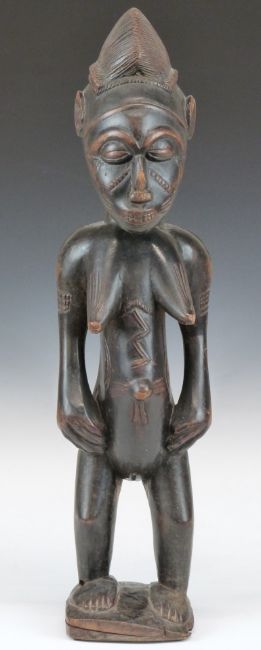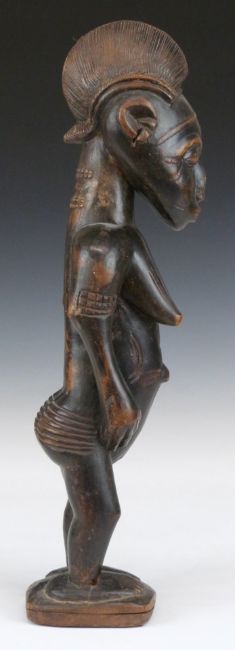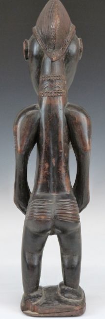 African tribal Bamana carved fertility figure with patination to raised surfaces and beaded decoration to arms and neck, H47cm