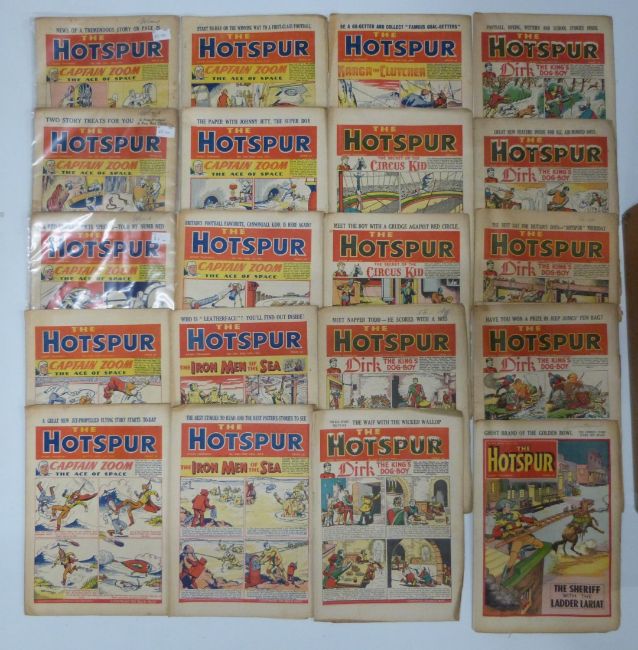 Three-hundred-and-forty-three Hotspur comic books comprising 148 first series dating from 1951-59 and 195 second series dating 1960-81.