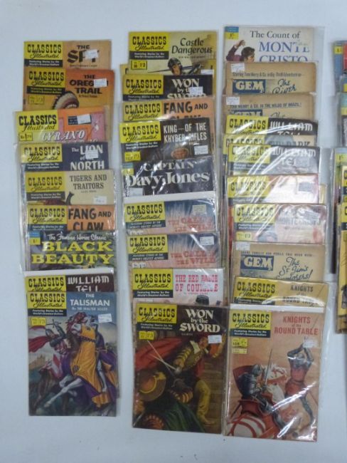 Fifty-Six Classics Illustrated and Movie Classic comics including Moby Dick, The Count of Monte Cristo, William Tell and The Call of The Wild.