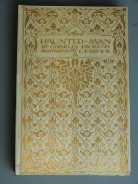 [Deluxe Vellum Binding] Charles Dickens The Haunted Man And The Ghost’s Bargain with illustrations by C.E. Brock published J.M. Dent 1907 with 8 coloured plates + text illustrations, this the deluxe edition bound in full vellum with elaborate gilt decoration and lettering (1)