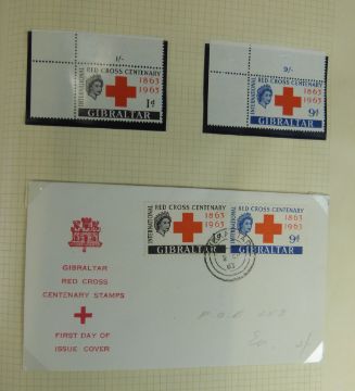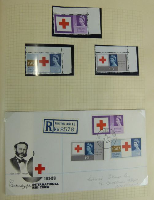 A collection of International Red Cross Centenary stamps 1863-1963, comprising Commonwealth omnibus set of stamps with corner margins, together with stamps and covers from foreign countries, in a Simplex loose leaf album