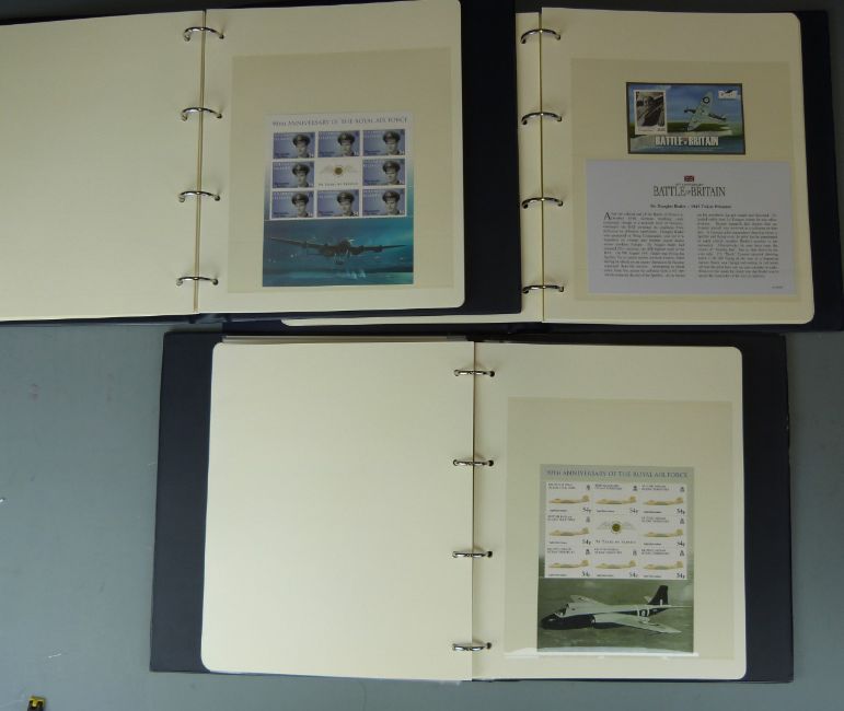 Three modern stamp albums 'History of the Royal Air Force Mint and Used Stamp Collection', many blocks, pairs and booklets, face value in pounds in excess of £350, plus a significant amount in other currencies