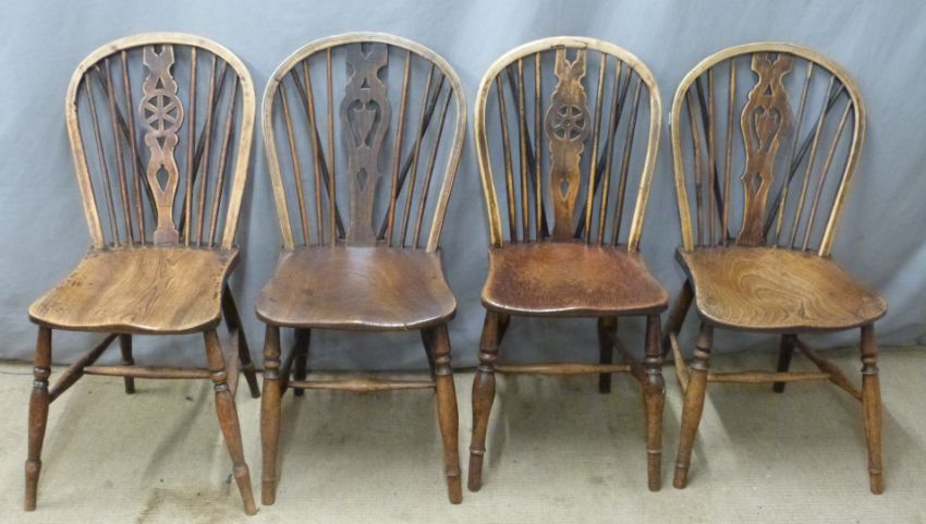Two pairs of elm seated Windsor dining chairs