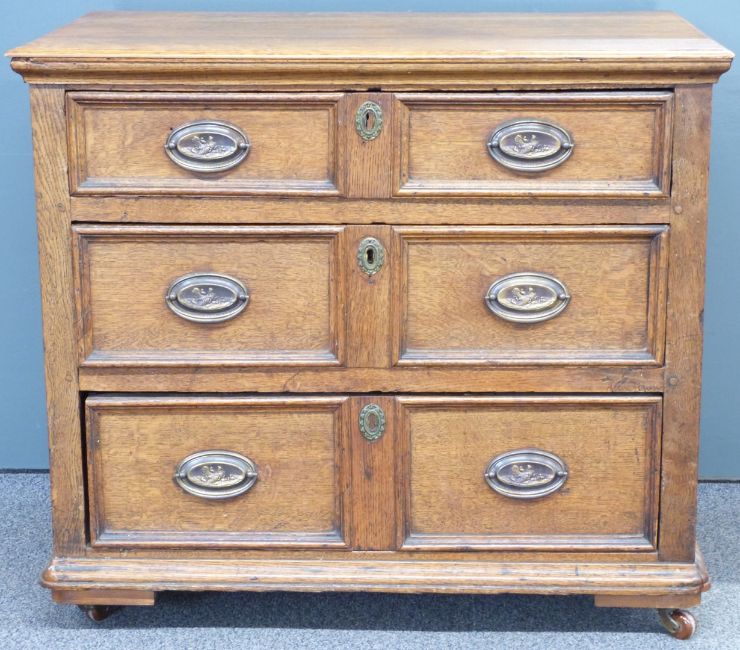 Small oak chest of three drawers, W82 x D50 x H72cm