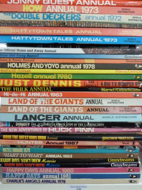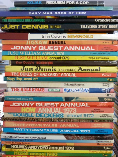 Fifty TV related annuals including Happy Days, Land of the Giants, The Hulk Annual, Charlie's Angels, Just Dennis etc.