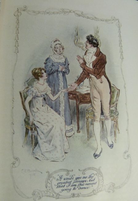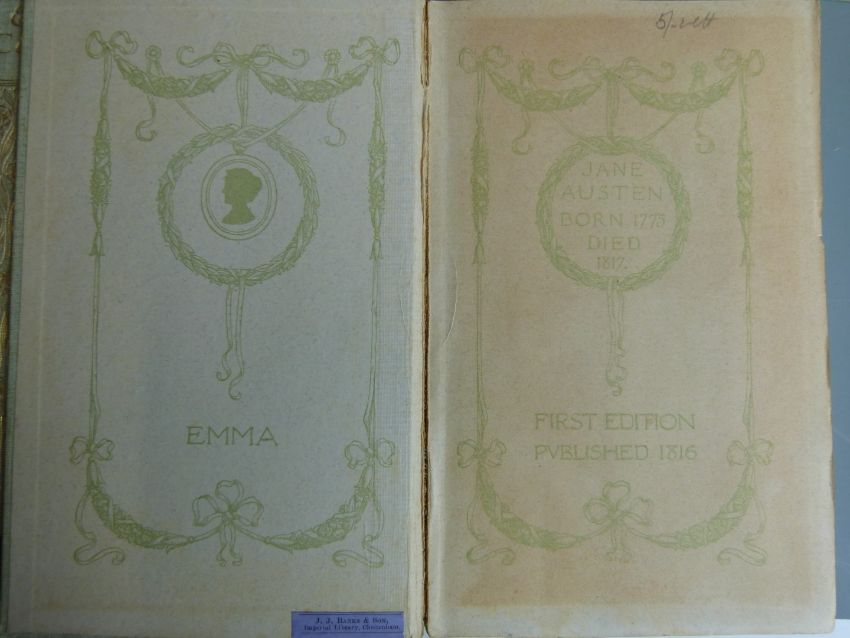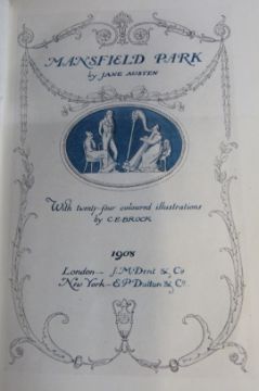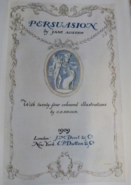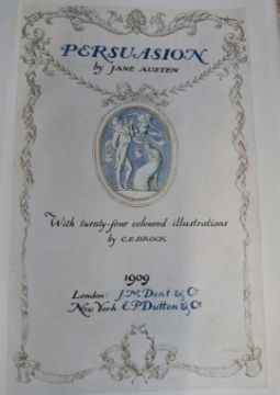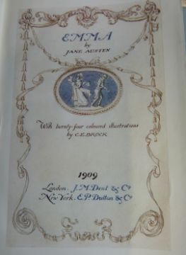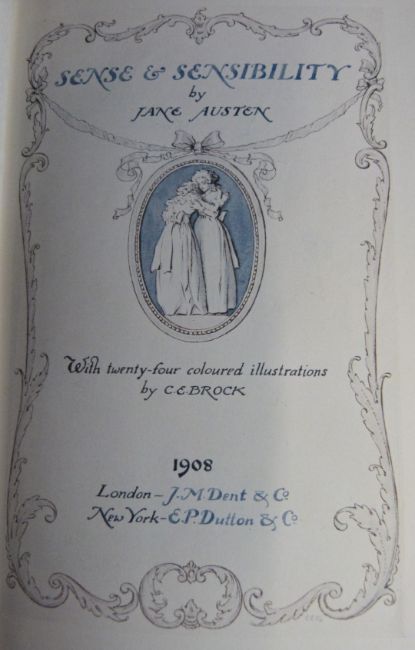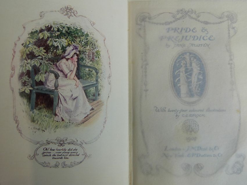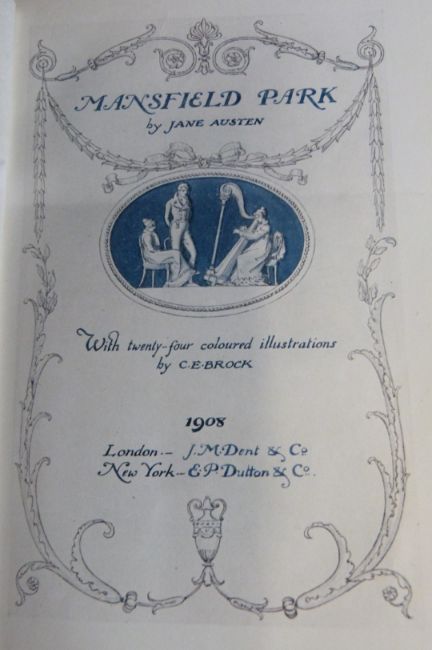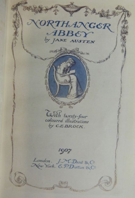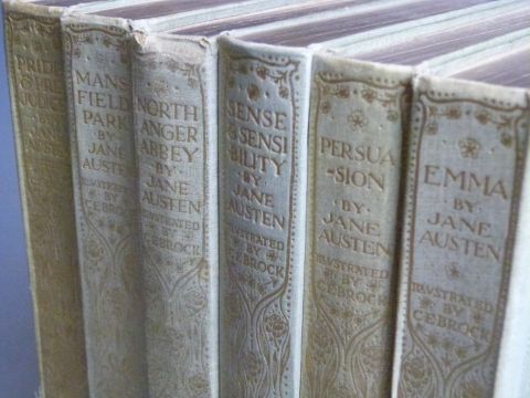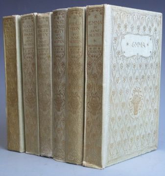 Jane Austen Novels including Pride & Prejudice, Sense & Sensibility, Emma, Mansfield Park, Northanger Abbey and Persuasion, published J.M. Dent 1907-1909 in 6 volumes illustrated with colour plates by C.E. Brock (English Idylls series) in publisher's elaborate gilt decorated cloth (6)