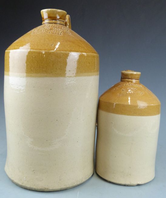 Two stoneware flagons, H.J.Berry New Inn Gloucester and F.W Taylor Grocer, Ledbury, tallest 40cm
