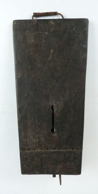 African Chokwe, Angola, tribal thumb piano with carved mask decoration, probably late 19th/20thC