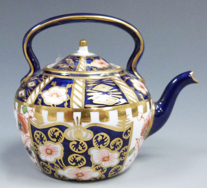 Royal Crown Derby Imari miniature teapot, pattern number 6299, date code for 1911, height 7cm