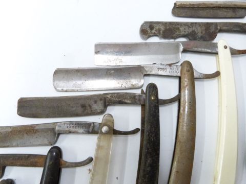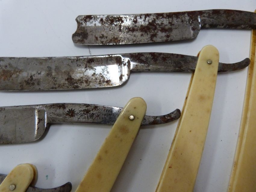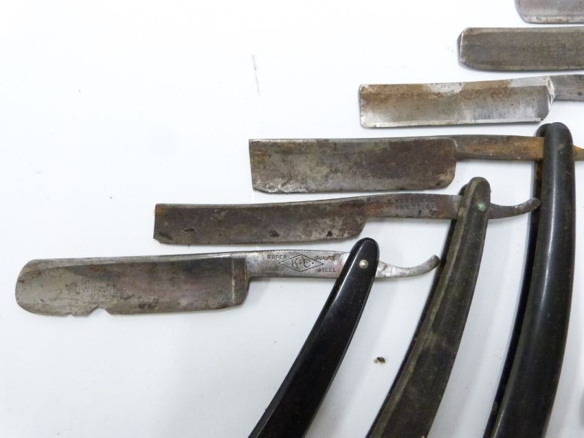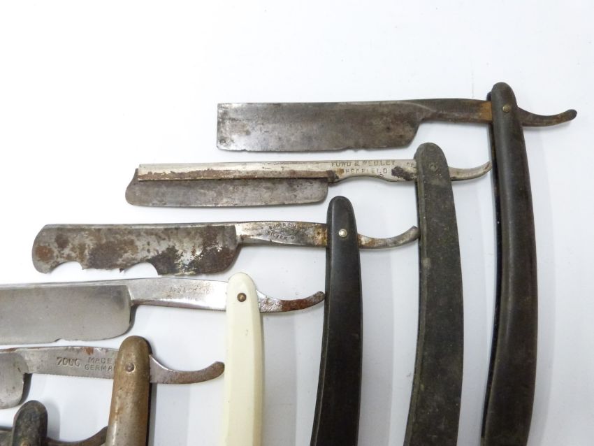 Cased set of Mappin Brothers cut throat razors together with ten further examples including Philip Harrison, Ford & Medley Sheffield, Hobson & Son and Edwinson Green Cheltenham