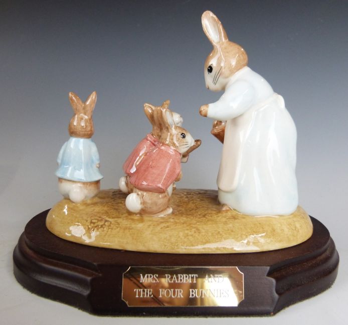 Beswick Beatrix Potter limited edition tableau Mrs Rabbit And The Four Bunnies,  'Sample Only' to base, H11.5cm, with wooden plinth