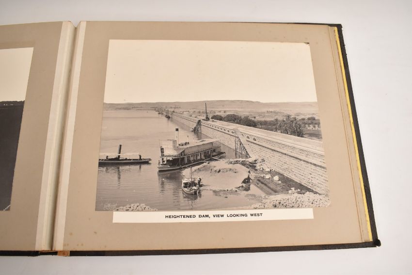 'The Heightening of the Aswan Dam, 1907-1912', large format photograph album, with presentation book plate showing it as a gift of the Egyptian Government to mark the inauguration on 23rd December 1912