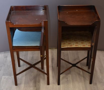 Four mahogany tray topped pot cupboards, most W34 x D34 x H76cm