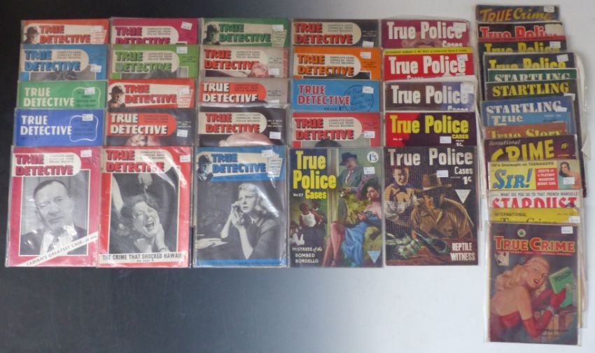 Forty-one adult magazines including 19 True Detective, 10 True Police, Startling Detective, True Romance, True Crime etc