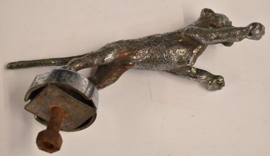 Desmo leaping leopard vintage car mascot, marked Desmo to base, length 20cm