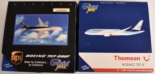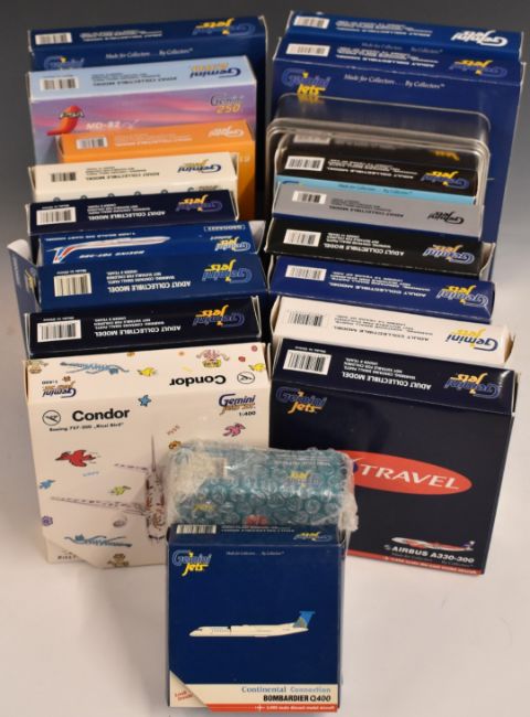 Twenty Gemini Jets 1:400 and 1:250 diecast model aircraft, various carrier liveries including GJTSO912 Transaero Boeing 777-200ER, GJBAW1093 British Airways Boeing 747-8F, GSDOA023 Dominicana Boeing 707-320 and GJAAL943 American Airlines Boeing 777-200ER, all in original boxes.