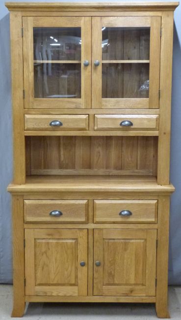 A contemporary light oak glazed dresser, W100 x D43 x H192cm