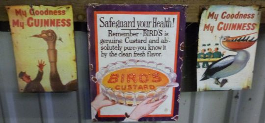 Eleven metal advertising signs including Persil, eggs, fishing tackle and Guinness, approximately 40 x 30cmPLEASE NOTE this lot is located at and will be sold from Cocknells Farm, Moreton Valence, Gloucester GL2 7LZ. Viewing is available on Tuesday 6th July 10am to 4pm and before the sale on Saturday 10th July from 9am to 11am, no appointment is necessary but we will limit numbers if required to ensure social distancing is observedWe are not able to offer our usual postage service for this lot
