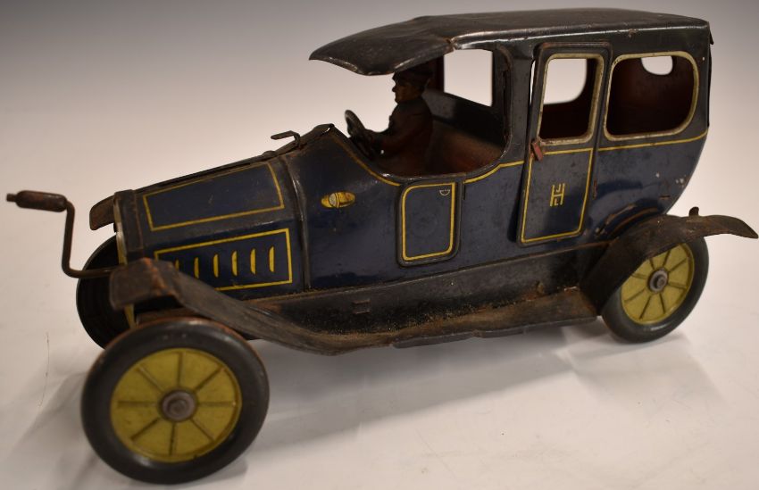 Hess tinplate model Hessmobile 1024 limousine with flywheel motor and blue and yellow livery.