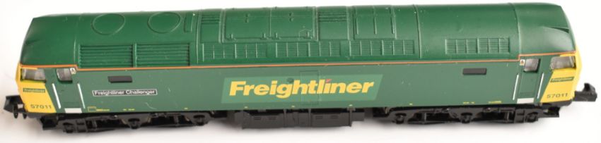 Six Graham Farish N gauge model railway diesel locomotives including Freightliner, EW&S, Class 40 etc, all in original boxes.