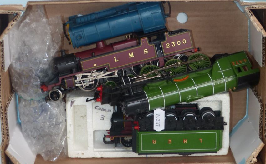 A collection of Hornby, Tri-ang and similar 00 gauge model railway locomotives, wagons and coaches including LNER The Flying Scotsman, diesel shunter etc.