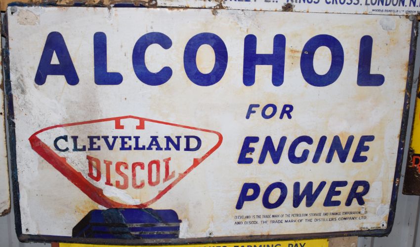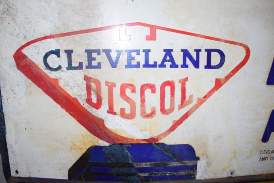 Vintage enamel advertising sign 'Cleveland Discol', 76 x 122cmPLEASE NOTE this lot is located at and will be sold from Cocknells Farm, Moreton Valence, Gloucester GL2 7LZ. Viewing is available on Tuesday 6th July 10am to 4pm and before the sale on Saturday 10th July from 9am to 11am, no appointment is necessary but we will limit numbers if required to ensure social distancing is observedWe are not able to offer our usual postage service for this lot
