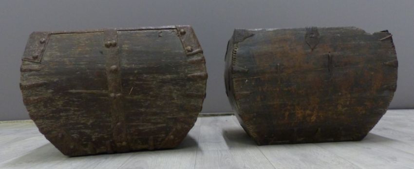 Two metal bound vintage trugs, possibly 19thC or earlier