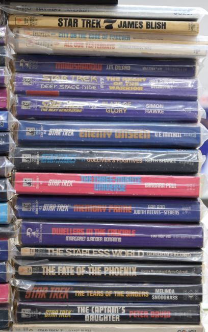 Approximately 73 Star Trek related paperback books including some early first editions.