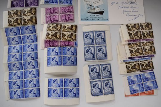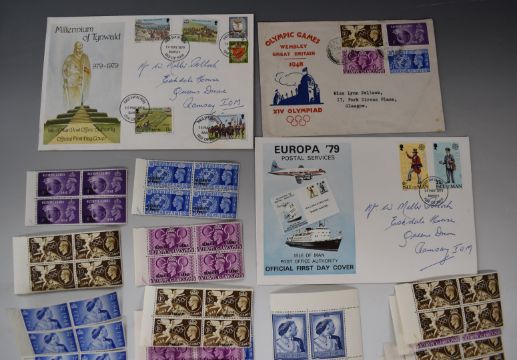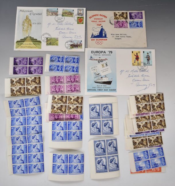 Great Britain 1948 silver wedding, two sets mint corner blocks x 4 and British Post Offices abroad 1948 Olympic Games mint sets x4 with Channel Islands 1948 mint blocks x 4 and first day covers x 3