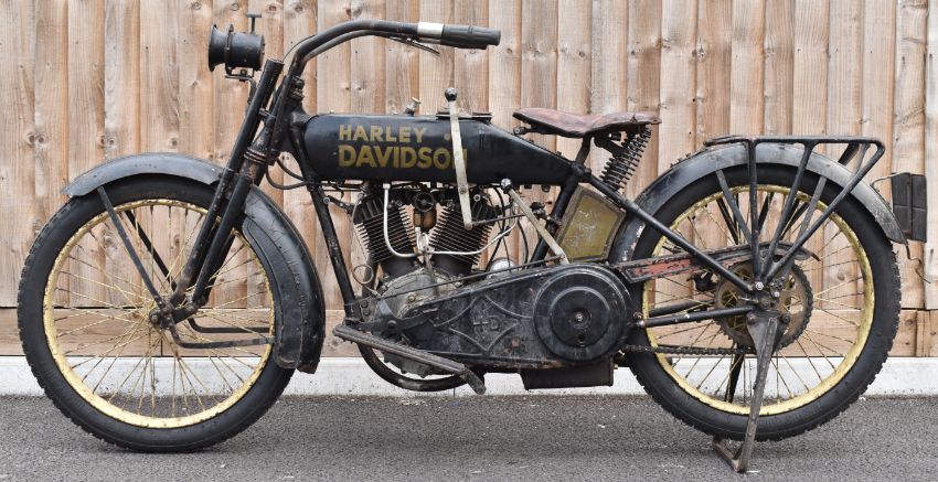 1919 Harley Davidson model F 989cc IOE V twin motorcycle, first registered in Northampton during March 1921 NH 2879, with V5c, in oily rag condition, with rebuilt magneto, for sale as part of a deceased's estate, it having been property of the late owner's father. 10%+VAT buyer's premium on this lot