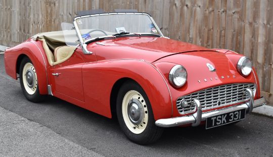 1960 Triumph TR3A sports car, registration number TSK 331, with V5c. Imported from the USA circa 1990 and converted to right hand drive, the vendor bought the car in 1999 with just the interior remaining to finish, which he commissioned including a new hood, sidescreens and tonneau cover, and has enjoyed the car very much, only for sale as he is now not able to drive a manual car, it has just had a rear brake overhaul and new master cylinder.10%+VAT buyer's premium on this lot