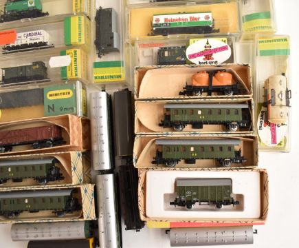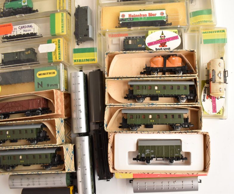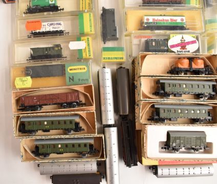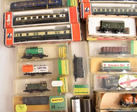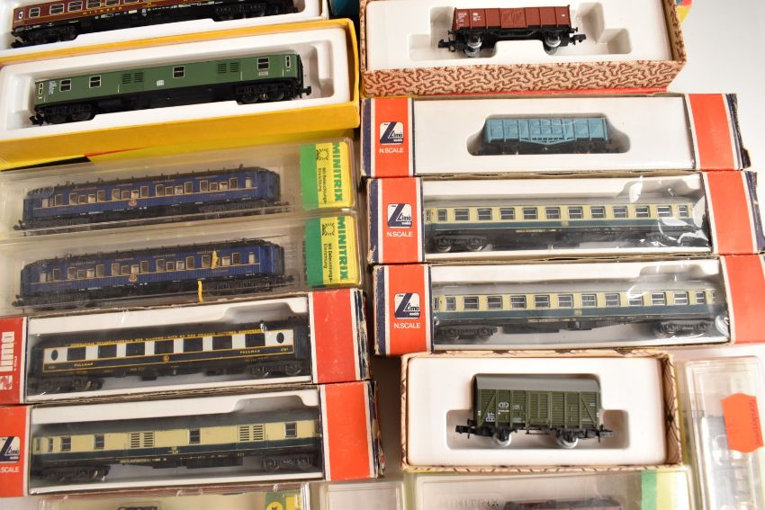 Seventeen Hornby Minitrix, Piko and similar N gauge model railway passenger coaches, most in original boxes.