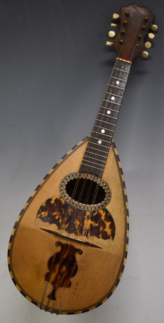 19thC mandolin labelled 'Mandlino Maidstone', Napoli and Murdoch and Co Londra, in original vintage case together with a tutor book and music